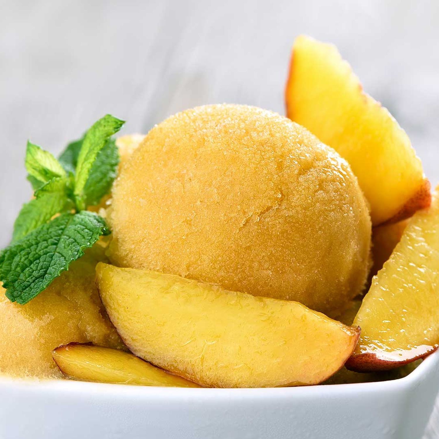Pfirsich-Sorbet mit Wildpreiselbeeren