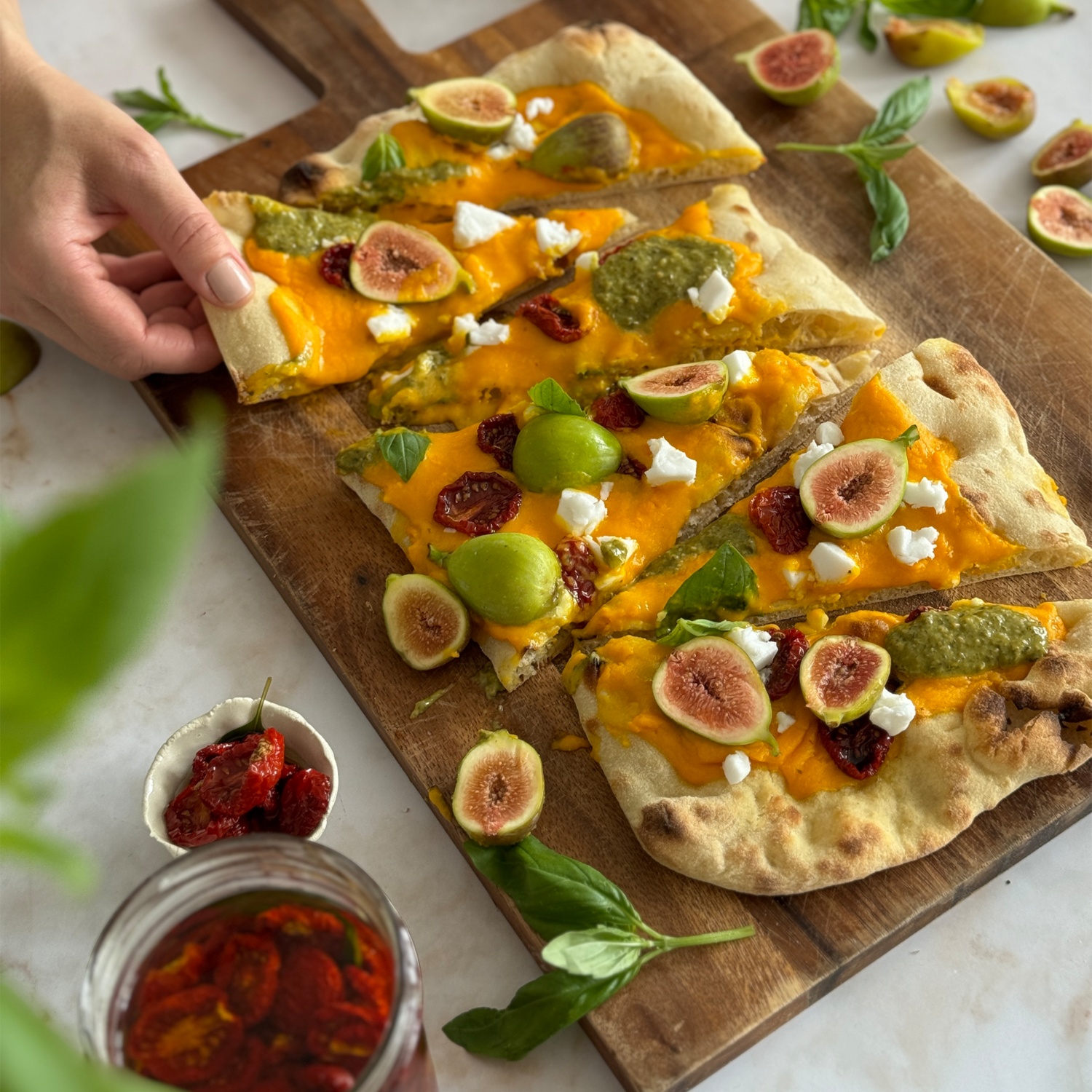 Diese herzhafte Pinsa mit cremiger Kürbisbasis und aromatischen getrockneten Tomaten ist die perfekte Abwechslung zur klassischen Pizza. Einfach gemacht, voller Geschmack – ideal für einen gemütlichen Abend!