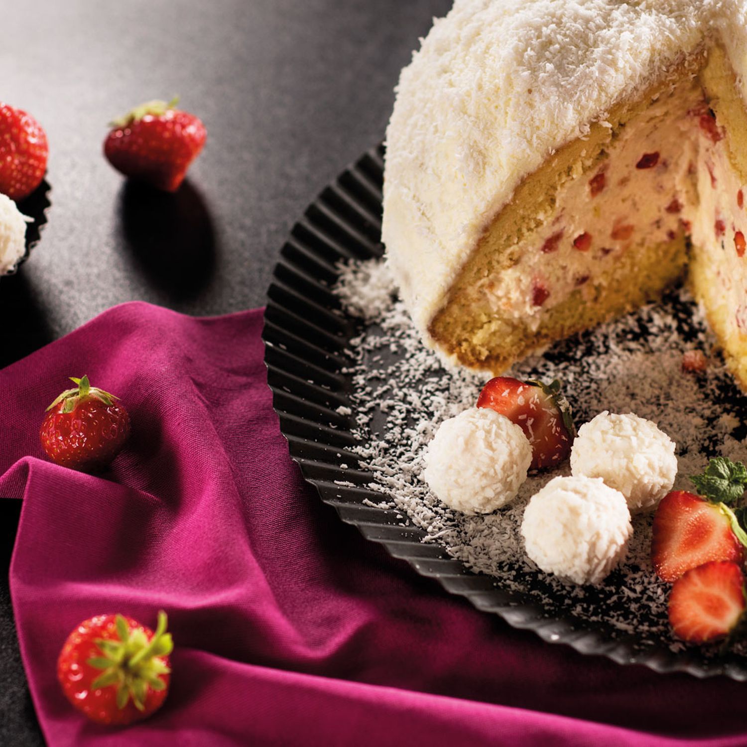 Versuche dich an der fruchtig-süßen Raffaello-Torte, die obendrein ein echter Blickfang auf deiner nächsten Party ist! Lasst sie euch schmecken!