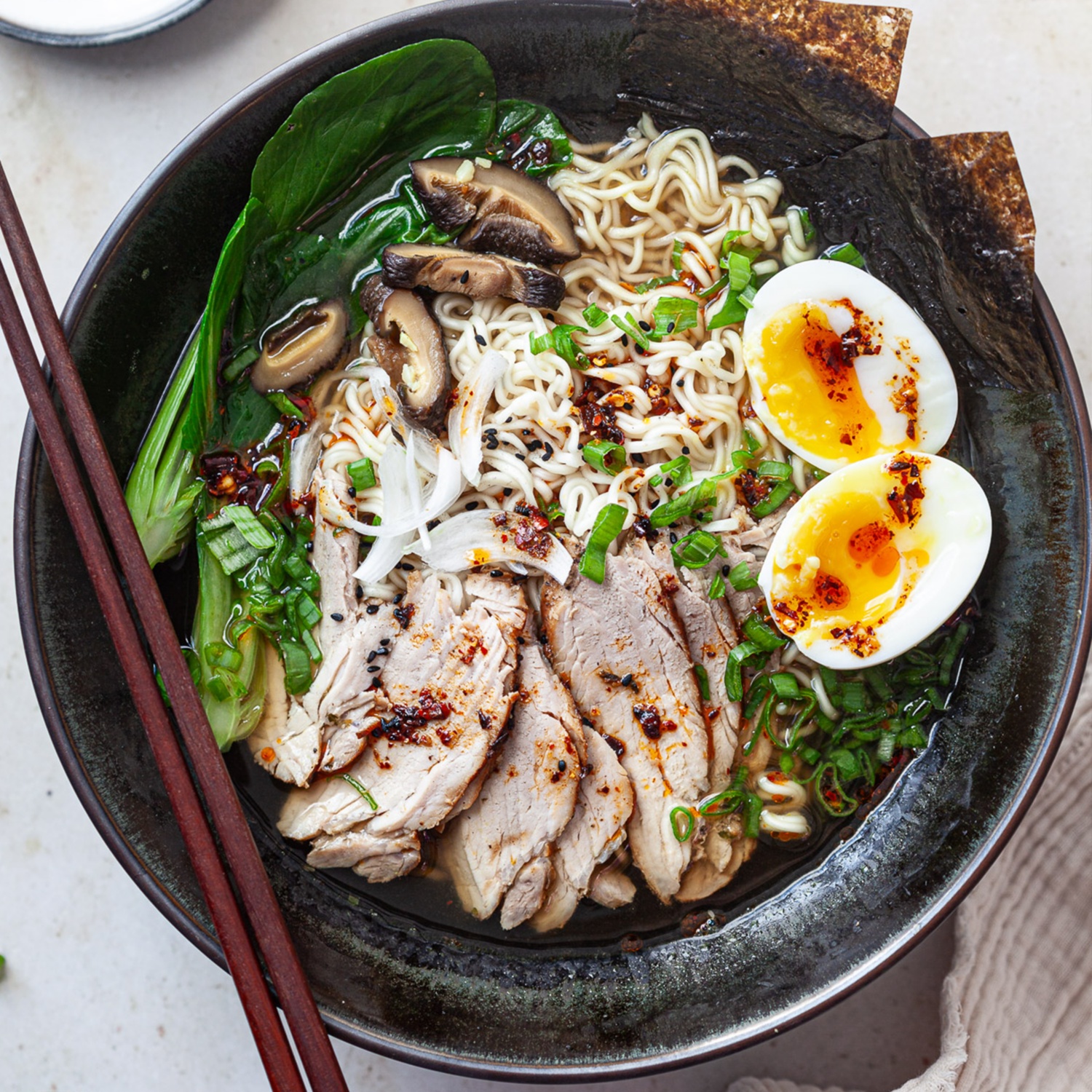 Asiatische Suppen sind bekannt für ihren kräftigen Geschmack und die einfache Zubereitung. Diese köstliche Suppe mit geröstetem Schweinefilet, Eiern, Nudeln und Gemüse ist definitiv ein Highlight!