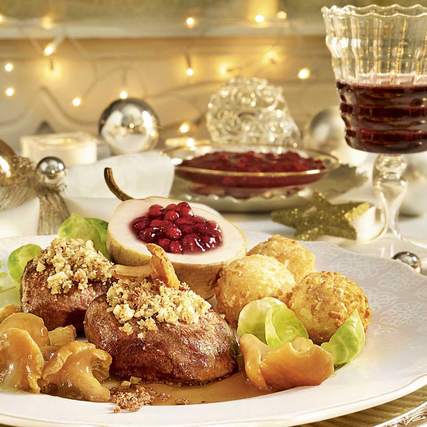 Eine Birne mit Preiselbeervariation oder Mandelbällchen passen als Beilage sehr gut!