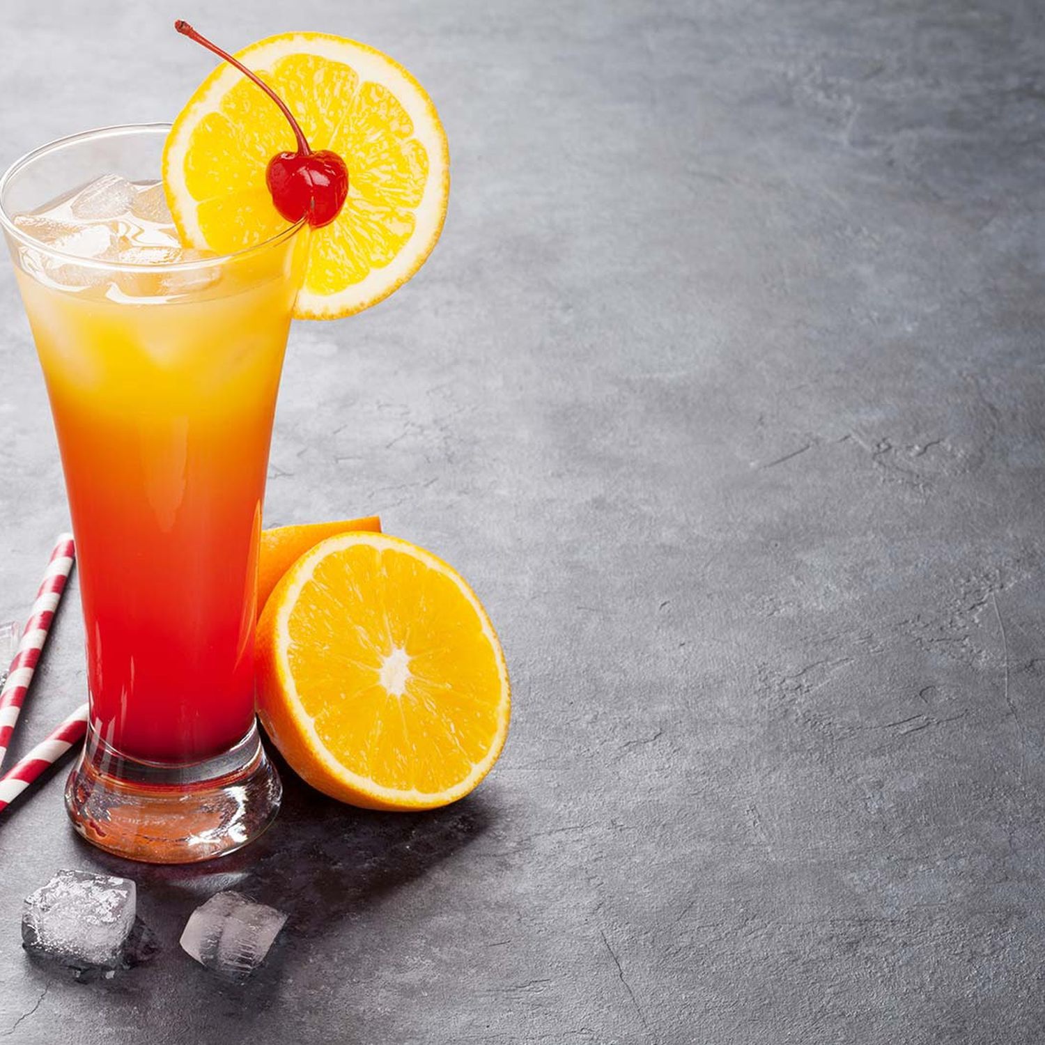 Den Cocktail mit Strohhalm und einem Stück Madarine am Glasrand servieren!