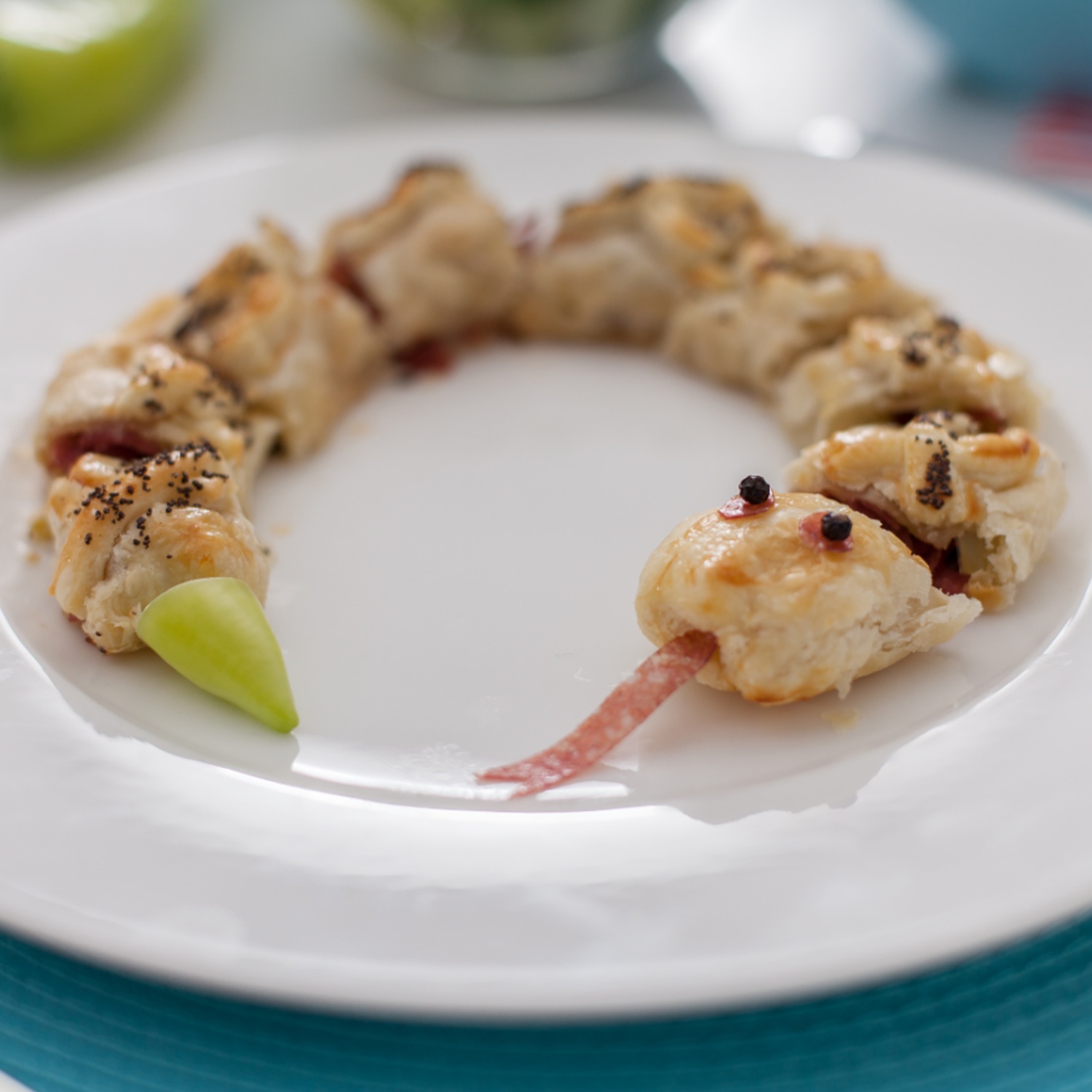 Egal, ob Fasching oder Geburtstag: Die Blätterteigschlangen - Blätterteig gefüllt mit Salami und Paprika - sind das richtige Rezept für jede Kinderparty und jeden Kindergeburtstag. Und dabei ist dieses Fingerfood nicht nur lustig anzusehen, es schmeckt auch richtig herzhaft.