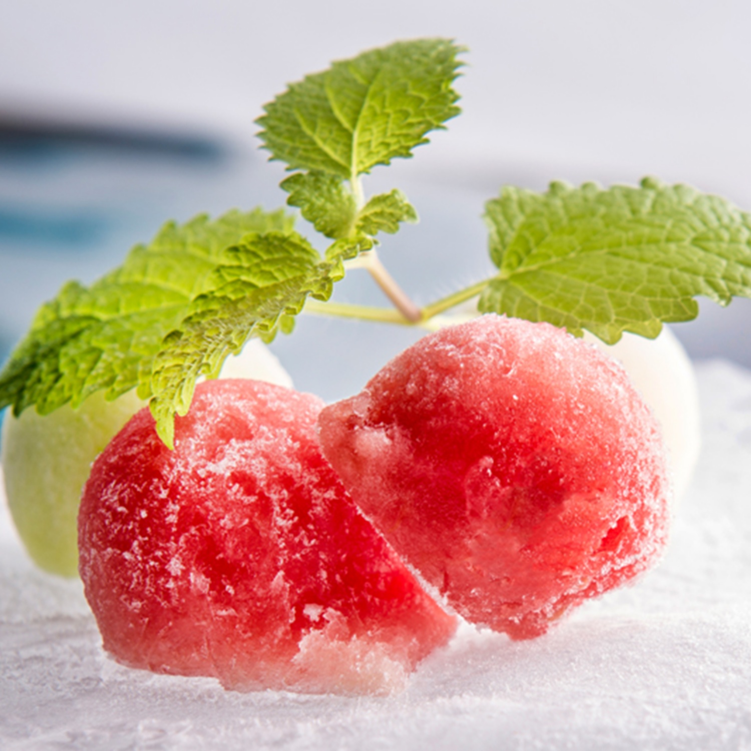 Die schnellen Melonen-Bällchen passen perfekt zu Champagner! Einfach wie Eiswürfel in das Glas geben und Urlaubsfeeling genießen! Sie schmecken aber auch als kleine Eis-Bällchen, einfach so im Mund zum Lutschen.