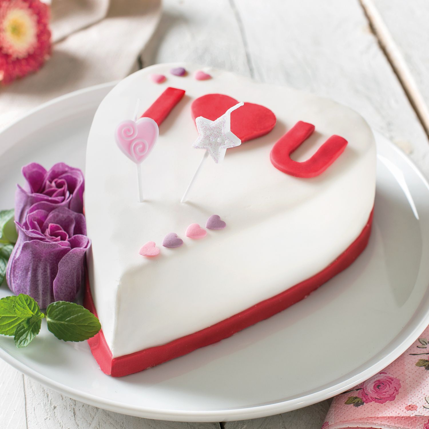 Die gemahlenen Mandeln mit dem Backpulver unter den Teig mischen. Die flüssige Schokolade dazugeben und die Masse in die Herzform füllen.