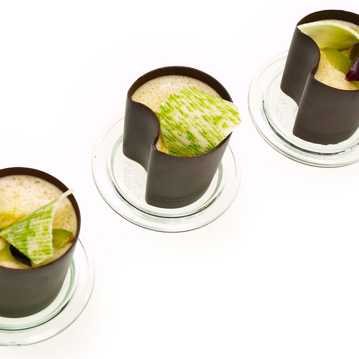 Schokobecher gefüllt mit dreierlei Mascarponecreme