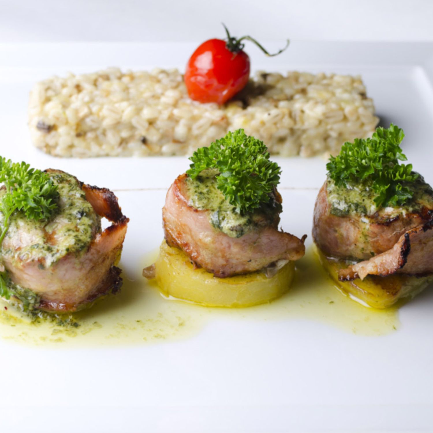 Erlebe eine Geschmacksexplosion mit dem zarten Schweinslungenbraten und der würzigen Kräuterbutter. Lass dir diese Hauptspeise auf der Zunge zergehen. Guten Appetit!