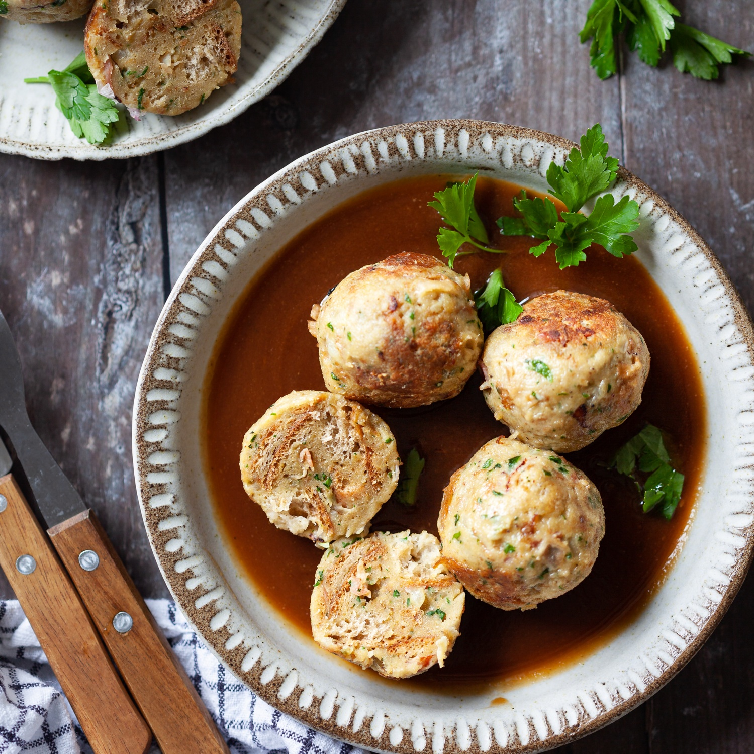 Restlos kochen! Sie fragen sich, wie Sie Ihre Brot-Reste optimal verwerten können? Unsere Semmelknödel in sämiger Zwiebel-Sauce sind nicht nur schnell und einfach, sondern auch super günstig zubereitet!