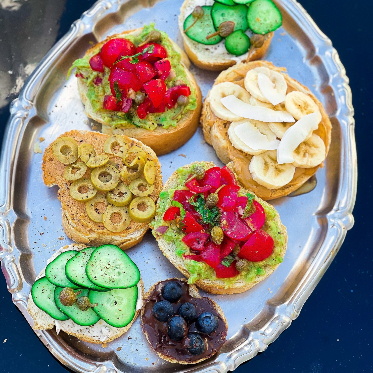 Der Toast kann auch gern auf andere Weise belegt werden, hier ein paar alternative Ideen: Cremiger Violife-Aufstrich mit Pfeffer, frischen Gurken und Kapern ODER Erdnussbutter mit Bananen und Ahornsirup ODER Schokoladenaufstrich mit Heidelbeeren ODER Hummus mit Paprika und Oliven.