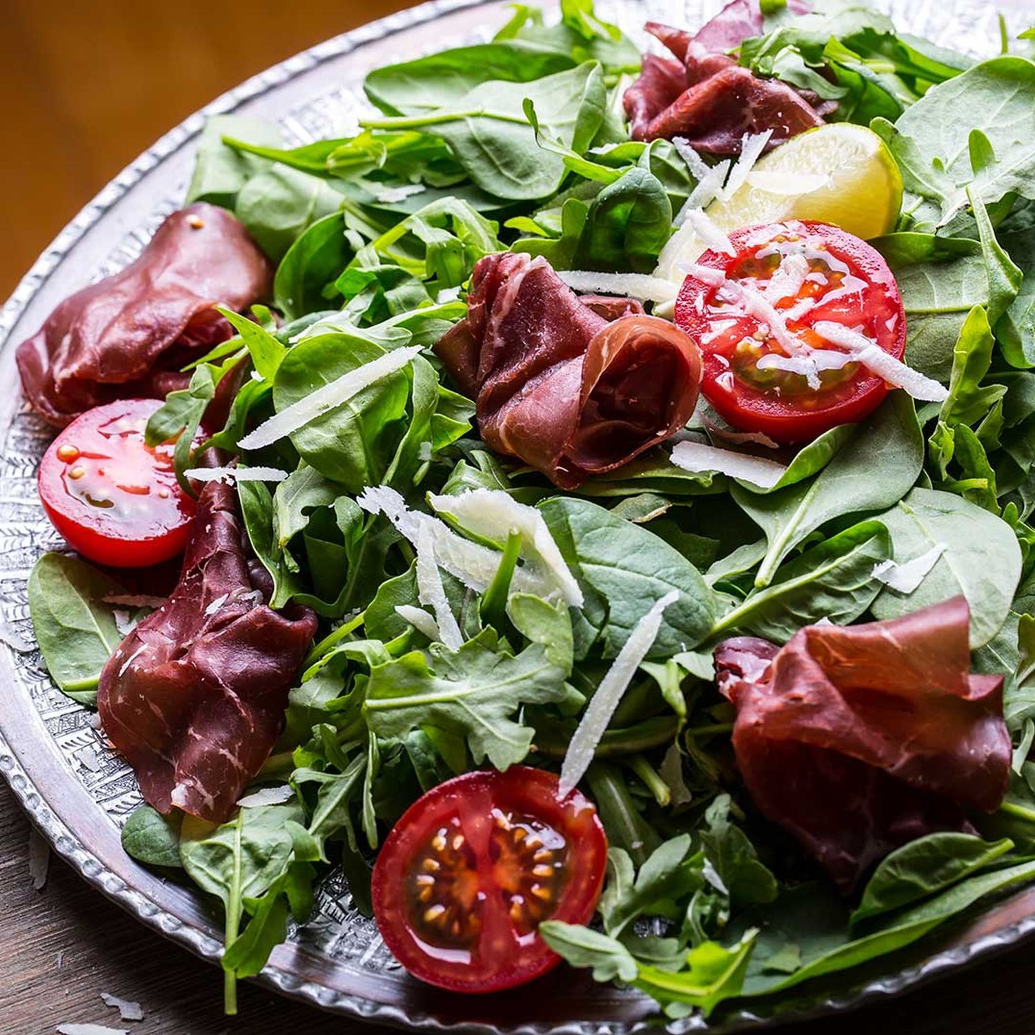 Sommerlicher Blattsalat mit Ribisel-Dressing und Bresaola