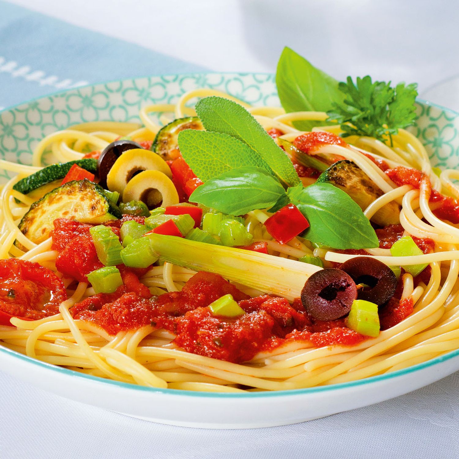 Spaghetti Arrabbiata mit gebratenem Gemüse