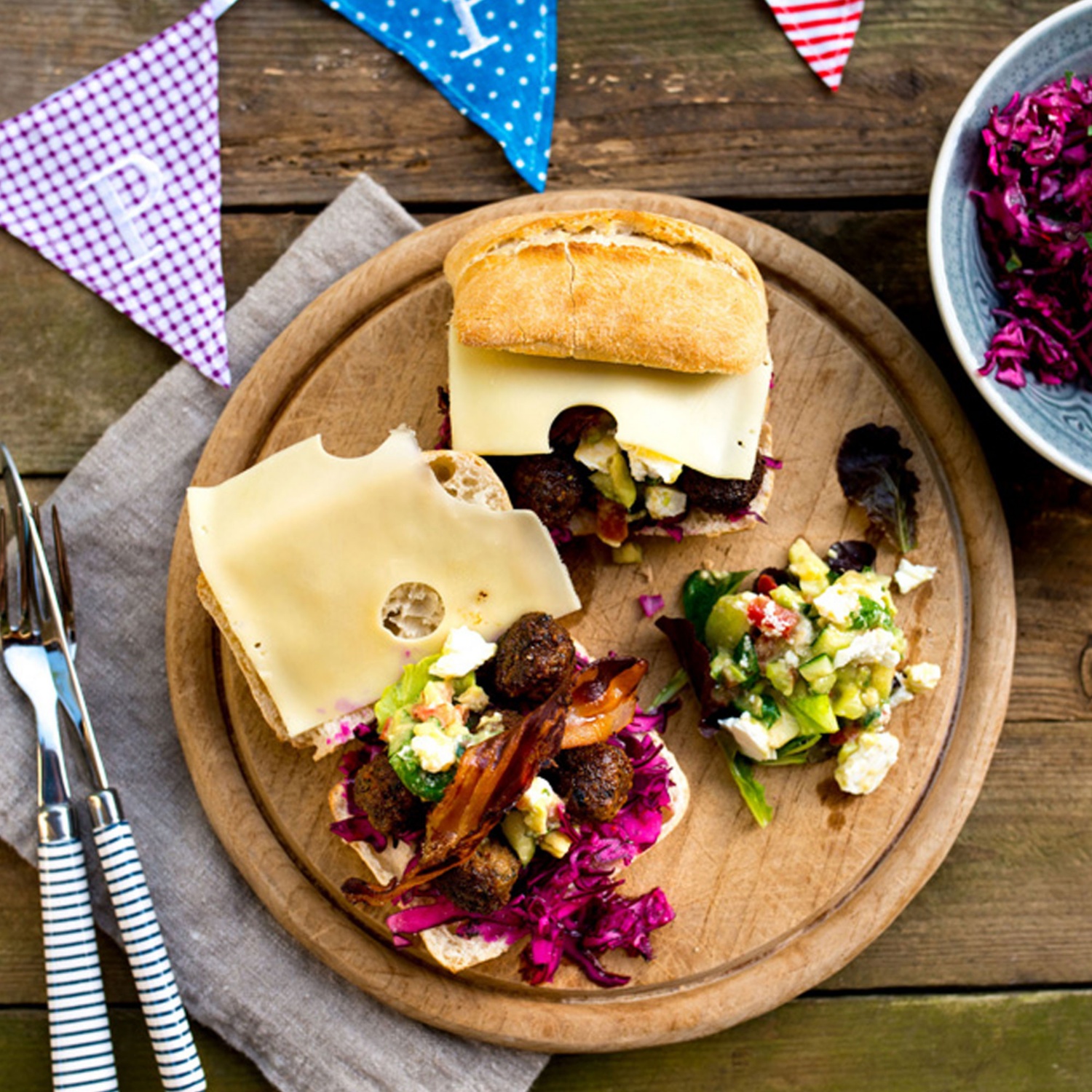 Steinofenbrötchen mit faschierten Bällchen und Rotkraut