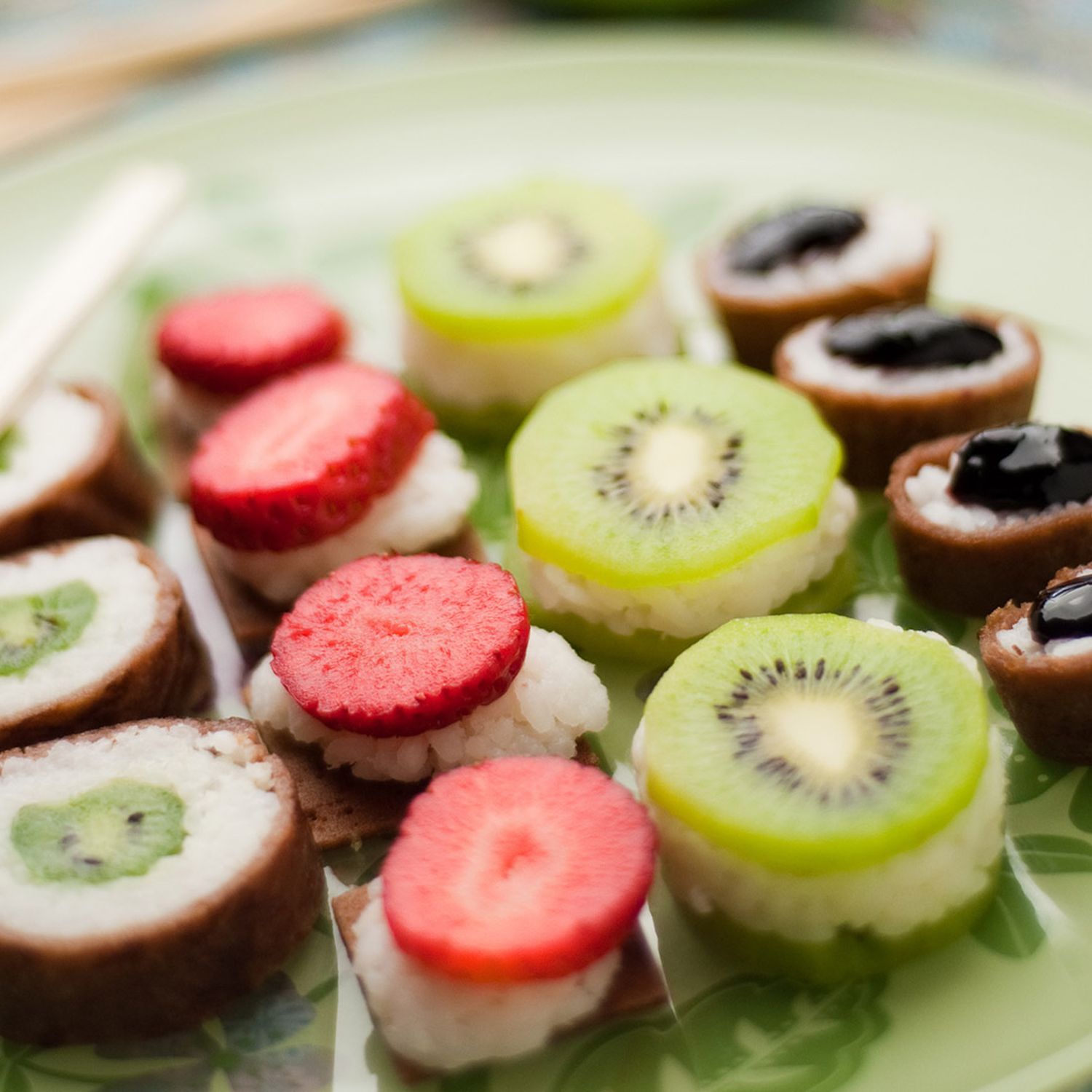 Auch ohne Schokoladensauce ist das süße Sushi ein wahrer Genuss!