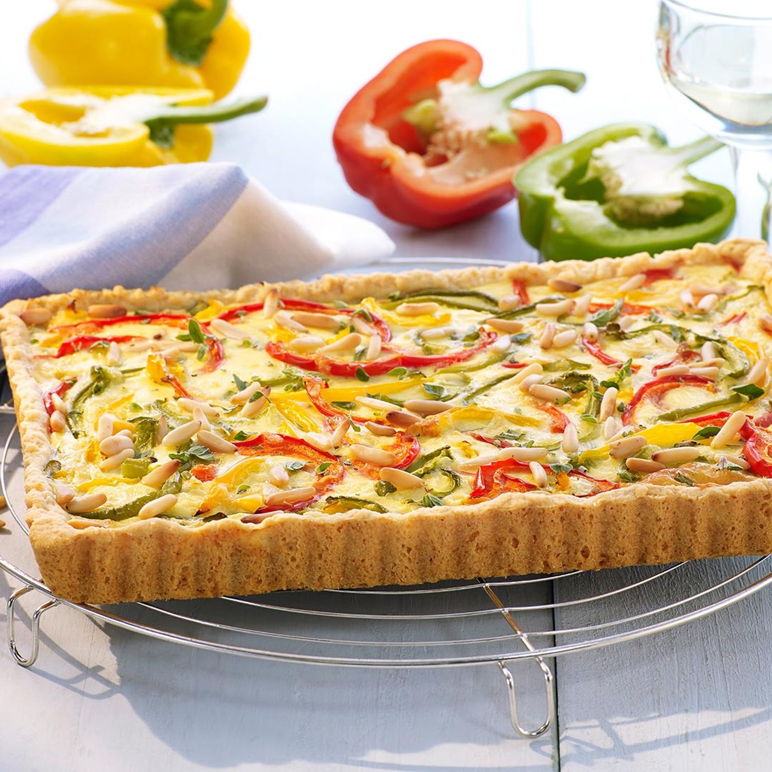 Tarte mit buntem Paprika und Pinienkernen