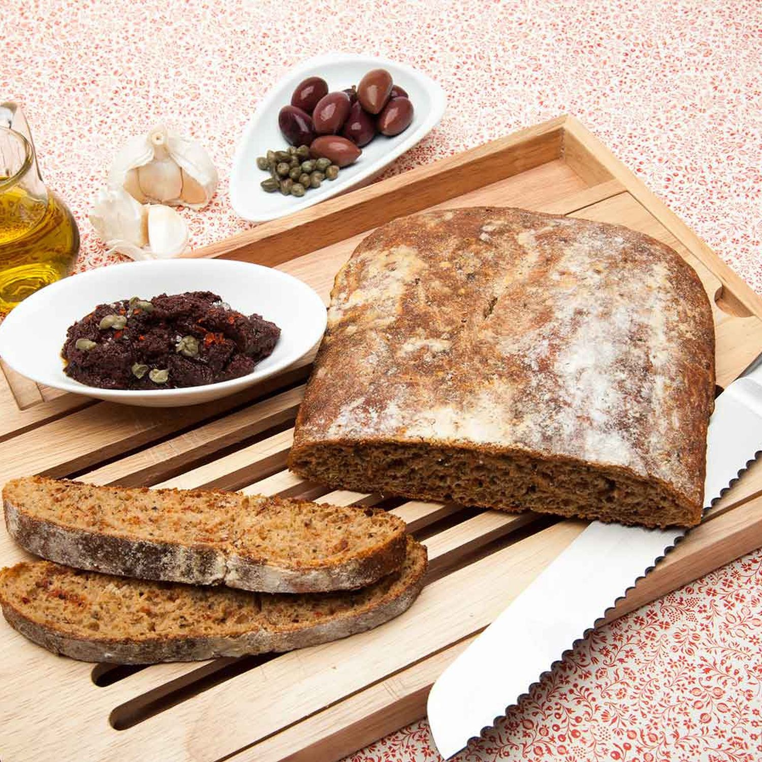 Das Ciabatta am besten lauwarm mit der Tapenade servieren.