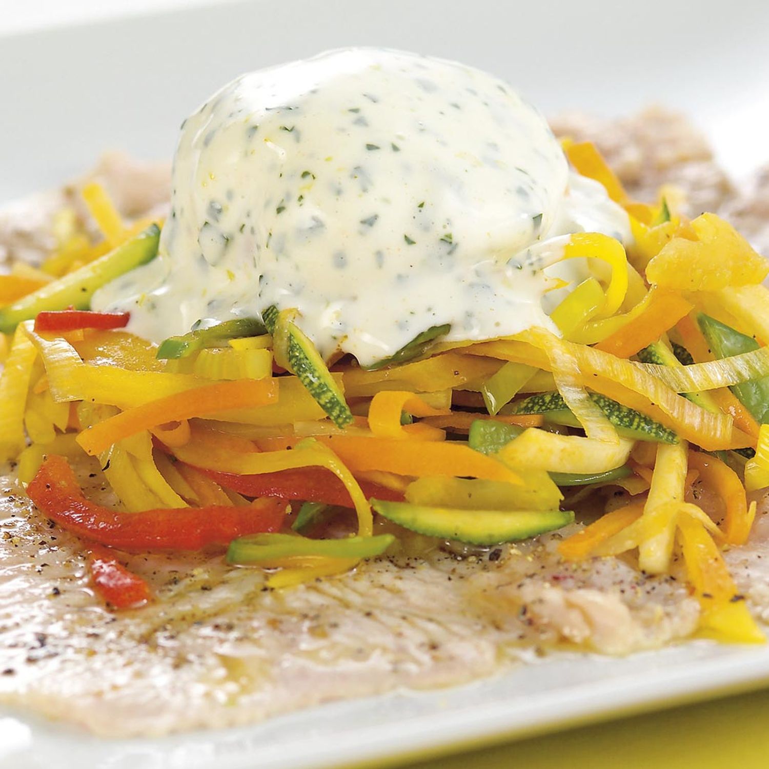 Ein herrliches Gericht für dich und deine Gäste. Lasst euch von dem Truthahn mit Gemüse und Mayonnaise-Ei verwöhnen!