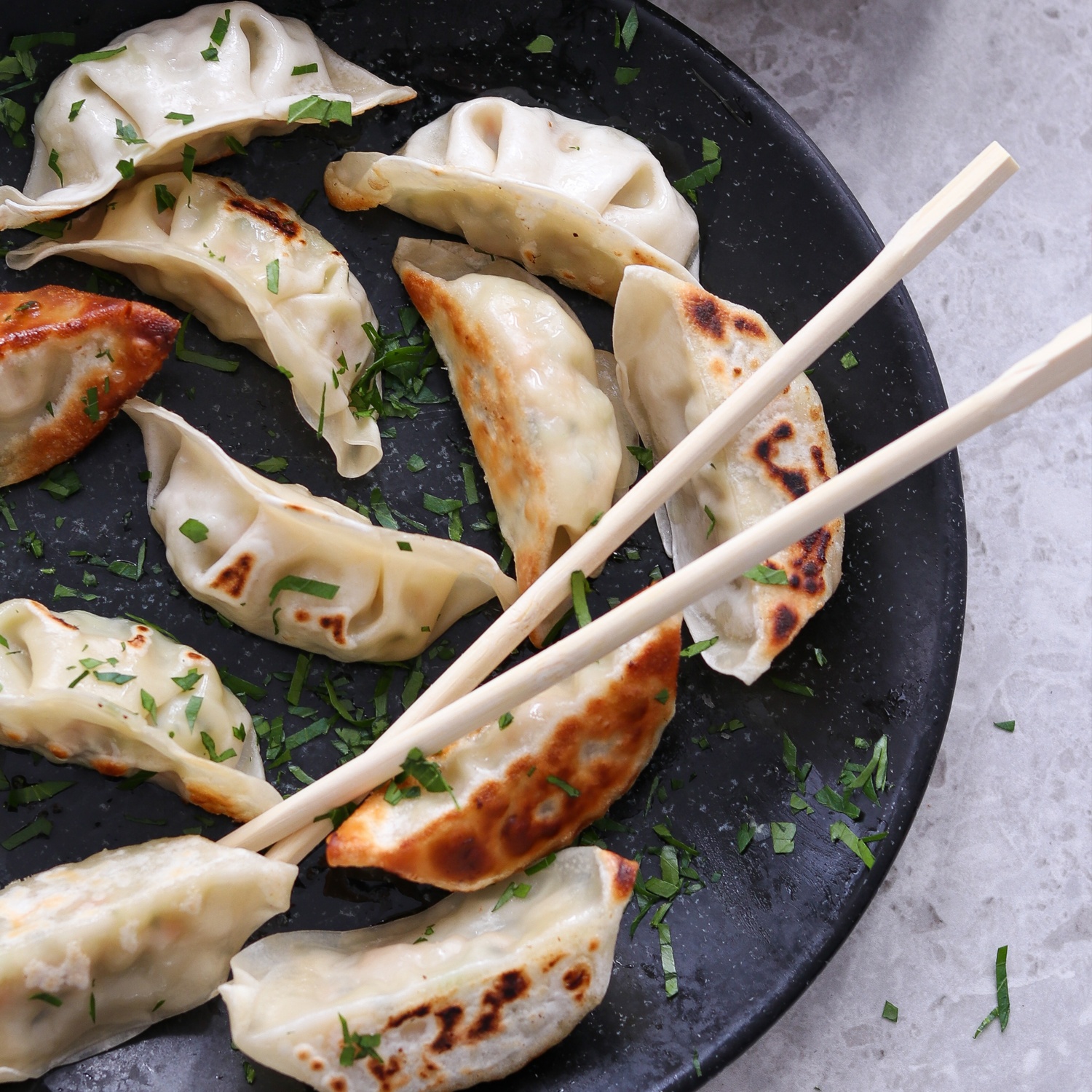 Die Gyoza entweder für ca. 4 Minuten in Salzwasser kochen oder in etwas Sesamöl braten.