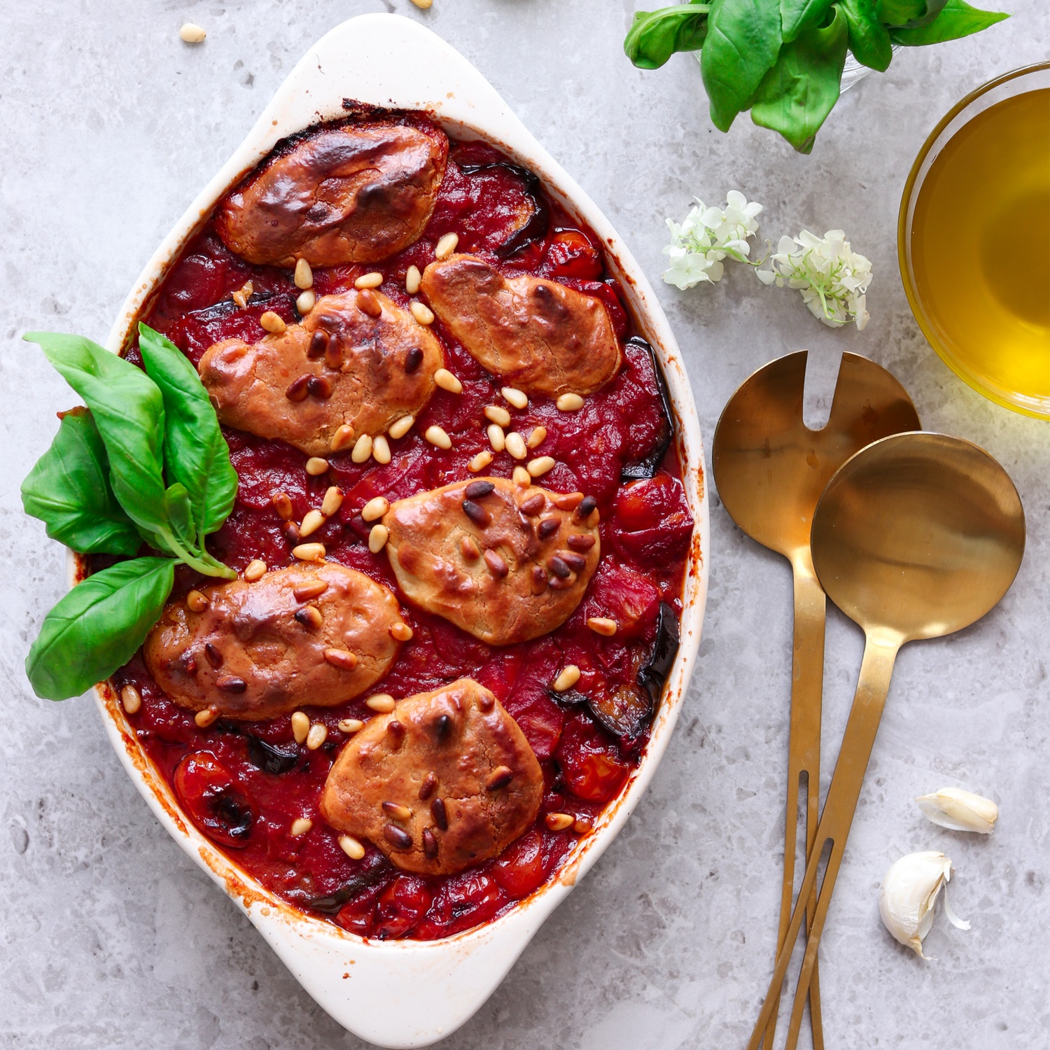 In diesem Rezept wird Parmigiana oder Italienische Kasserolle mit Melanzani, Tomaten und veganem Käse zubereitet.Ein leckerer Gemüseauflauf mit italienischem Flair!