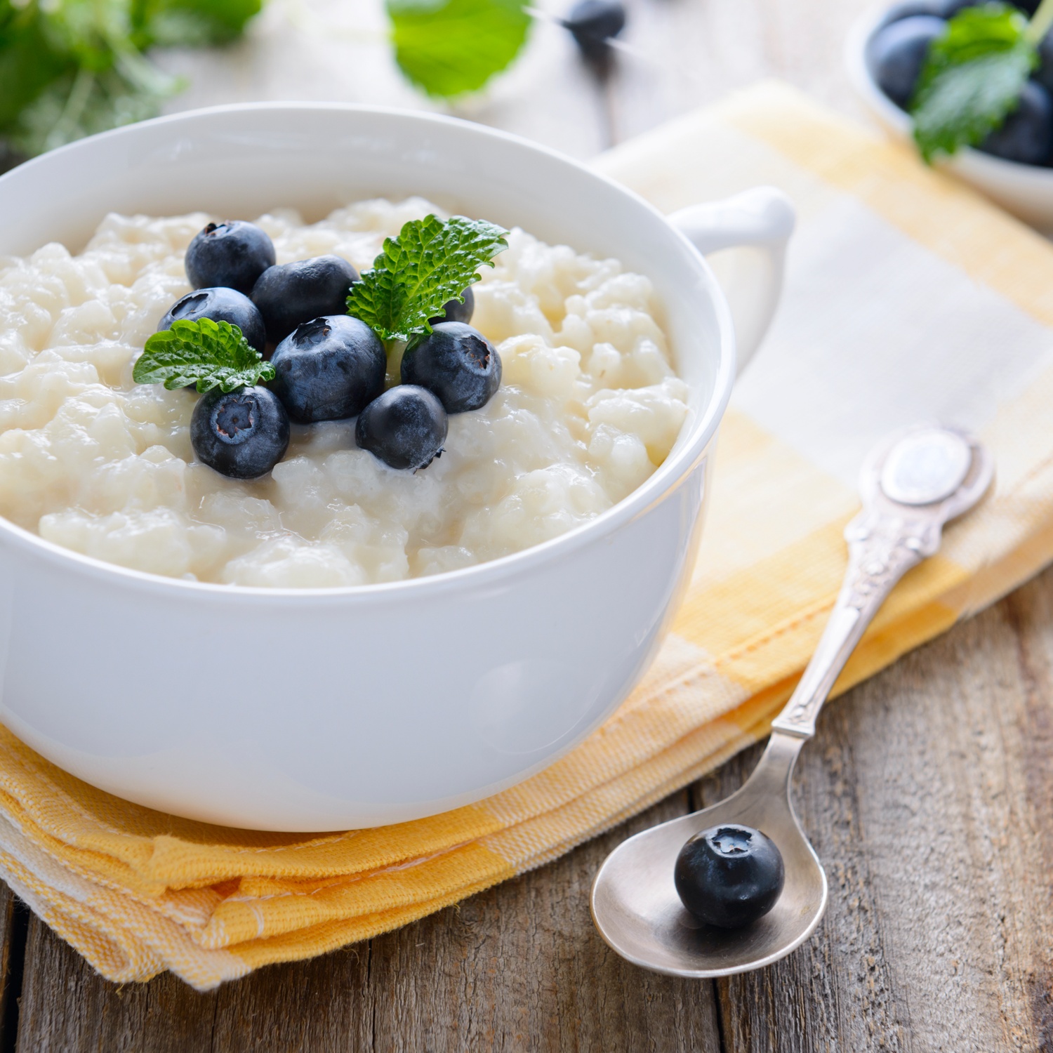Den fertigen Milchreis heiß oder kalt servieren. Verfeinert kann der Milchreis mit Vanille oder Heidelbeeren werden.