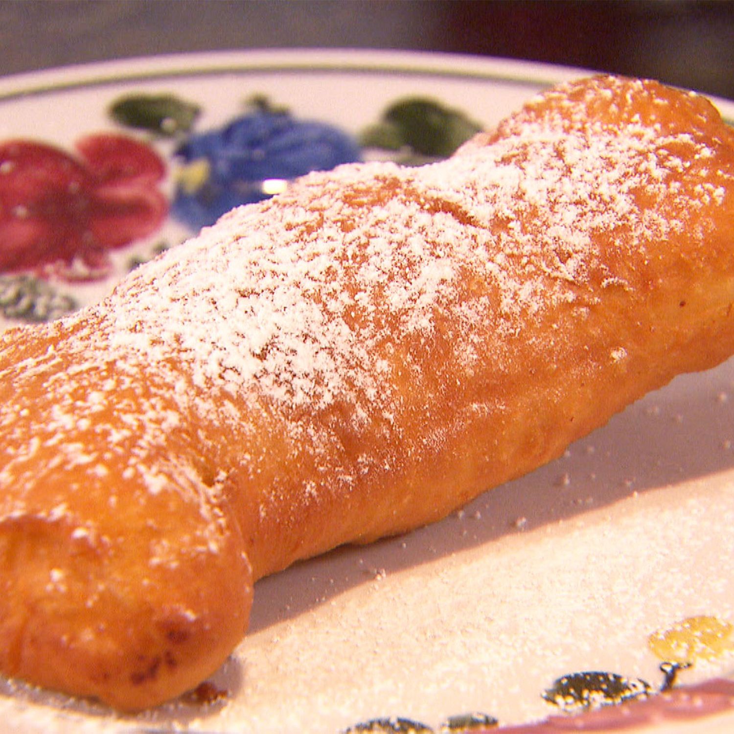 Die Teigstücke im tiefen Fett goldbraun backen und mit Staubzucker bestreuen.