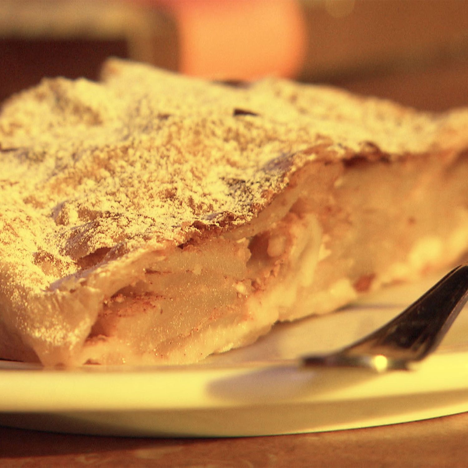 Das Geheimnis des guten Apfelstrudels liegt für Backstubenleiter Eugen Jandl in der Zubereitung des Teiges, der so dünn sein soll, dass man durch ihn eine Zeitung lesen kann.