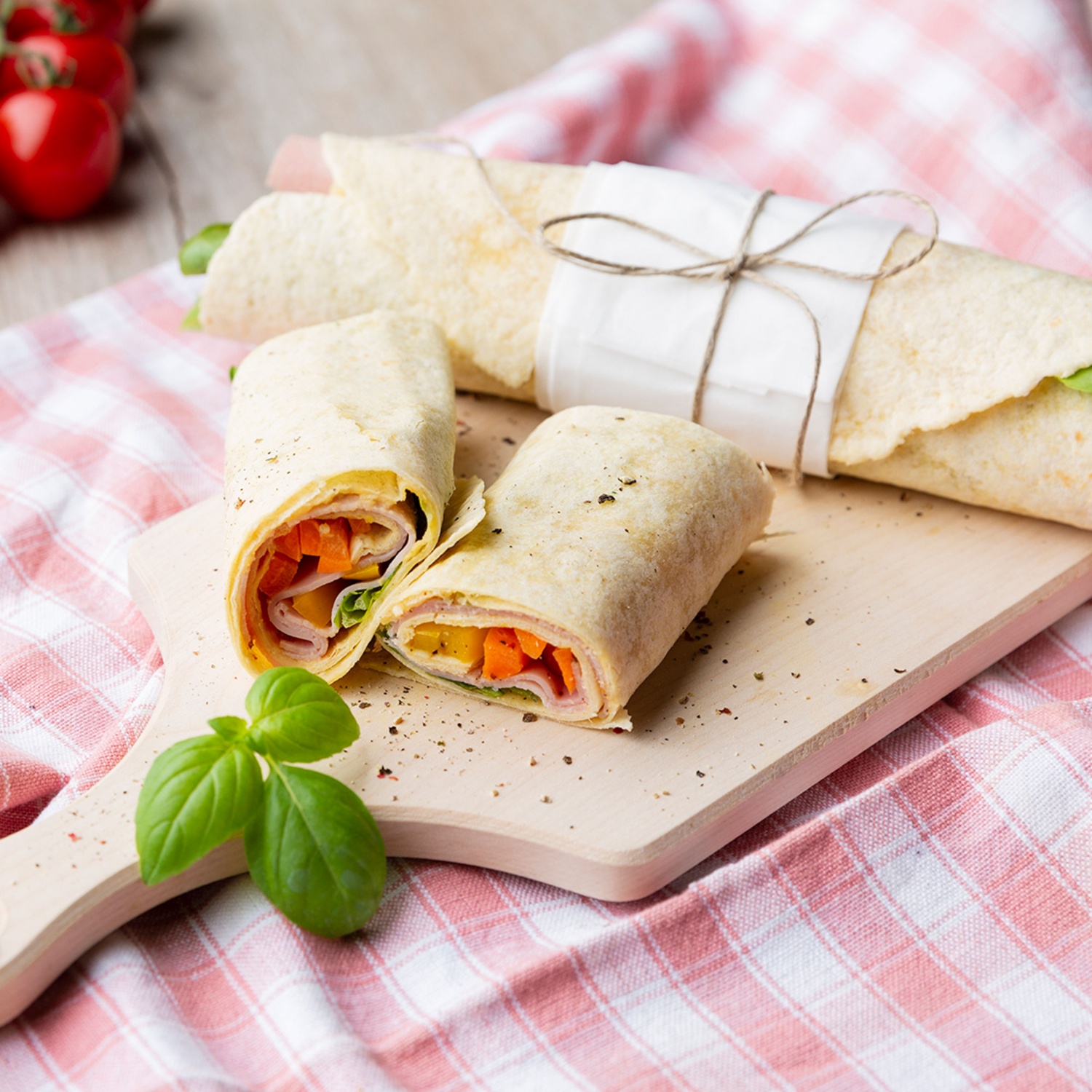 Wrap auf einen Teller legen, mit dem Aufstrich bestreichen, individuell belegen, zusammenrollen, und fertig ist ein köstlicher Jausensnack für die große Pause!