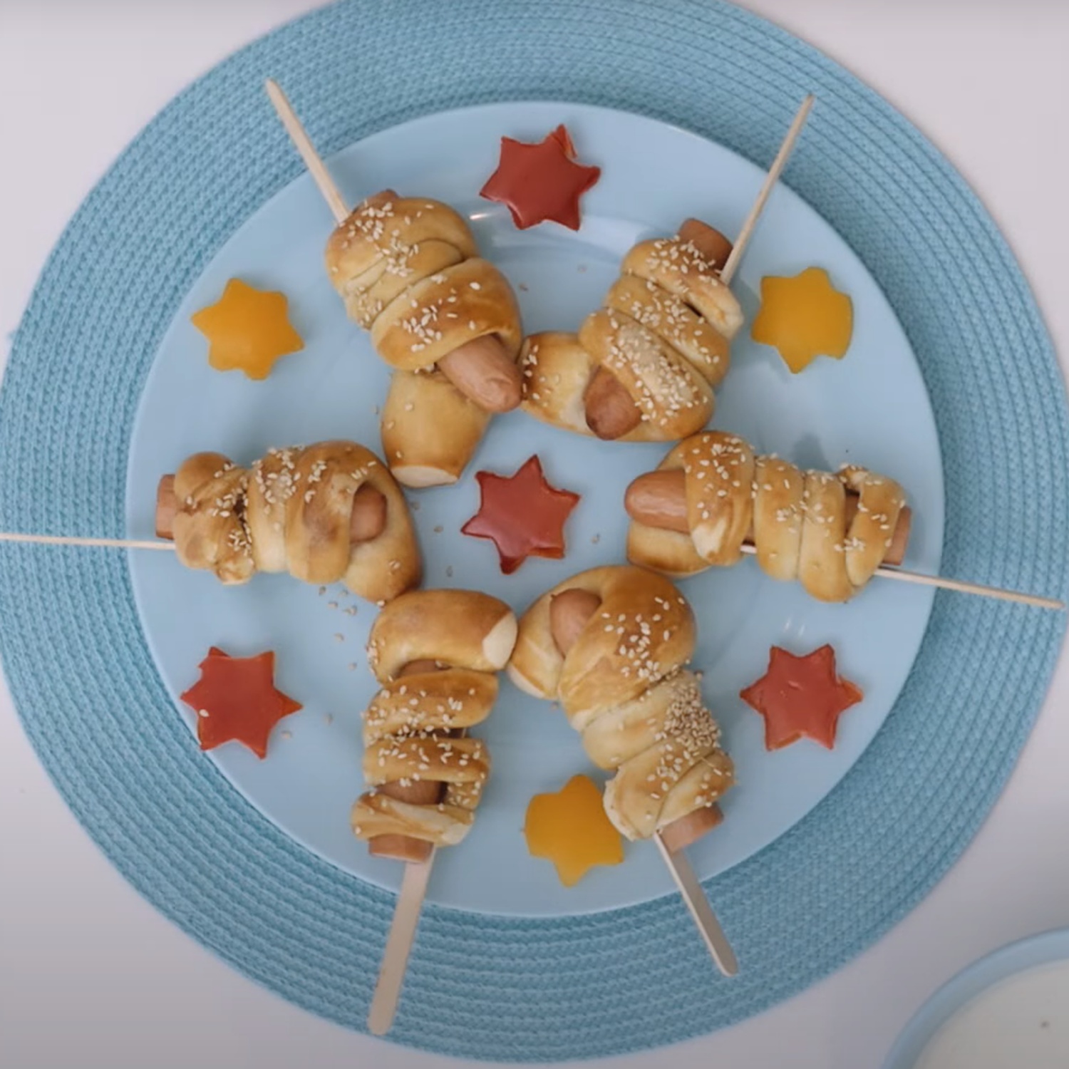 Die Würstchen-Raketen mit Sternen-, Sonnen- und Monddip sind die Highlights bei jedem Kindergeburtstag. Das Rezept für die Würstchen im Schlafrock ist ganz einfach. So einfach, dass auch Kinder es nachmachen können. Wir zeigen Ihnen, wie man die besten Würstchen im Teigmantel macht!