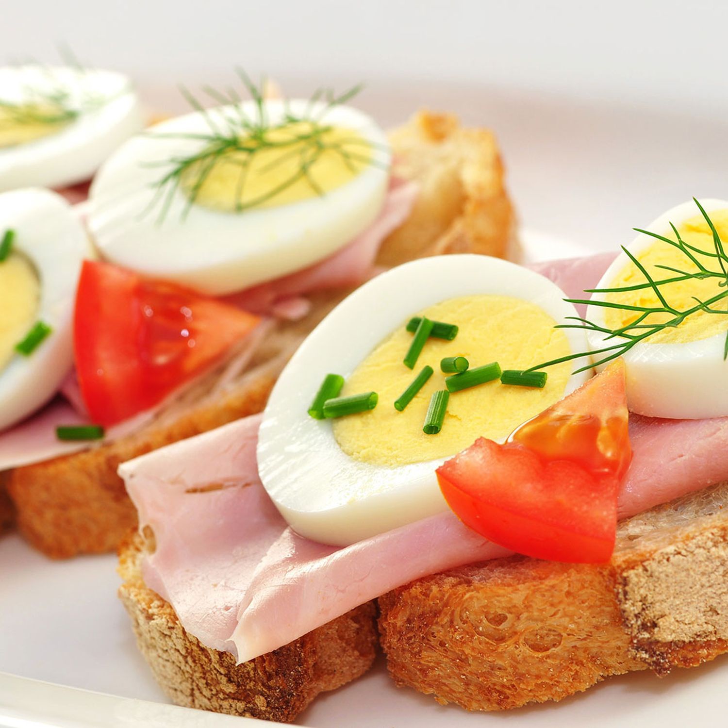 Zu einer kalten Jause darf ein würziges Vollkornbrot belegt mit Schinken und Ei nicht fehlen. Man kann dieses Brot auch für unterwegs einpacken und jederzeit genießen.