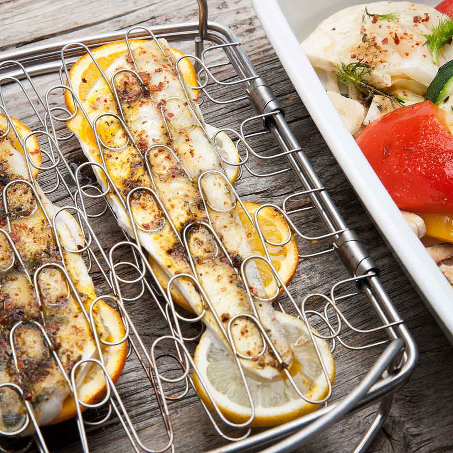 Zander in Zitronen-Orangen-Hülle mit Grillgemüse