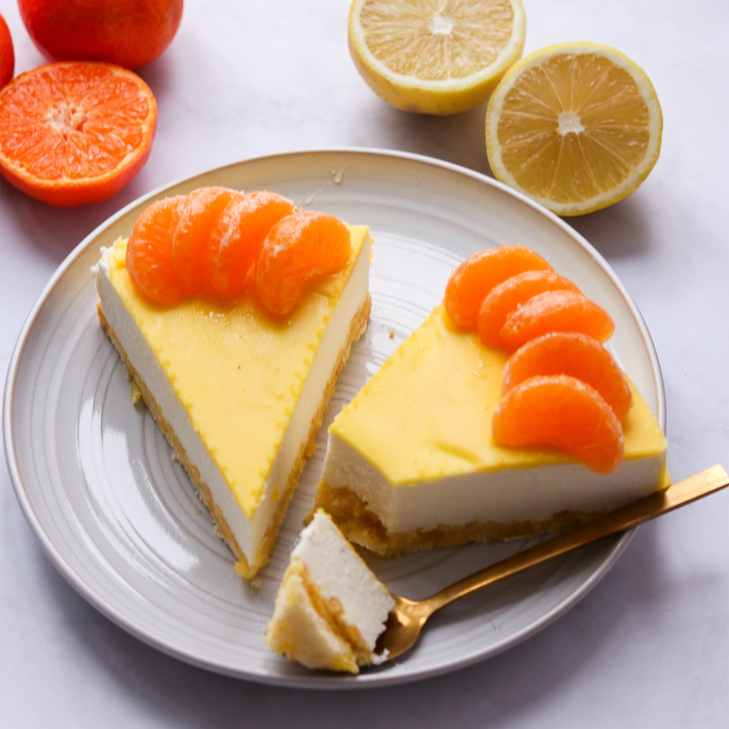 Vor dem Servieren mit in Agavensirup glasierten Mandarinen dekorieren.