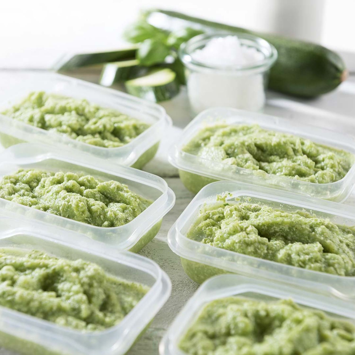 Ca. 5 Minuten leicht köcheln lassen. Nun das eingefrorene Zucchini-Mousse kurz in der Suppe mitkochen, mit einem Stabmixer pürieren und alles vermischen.