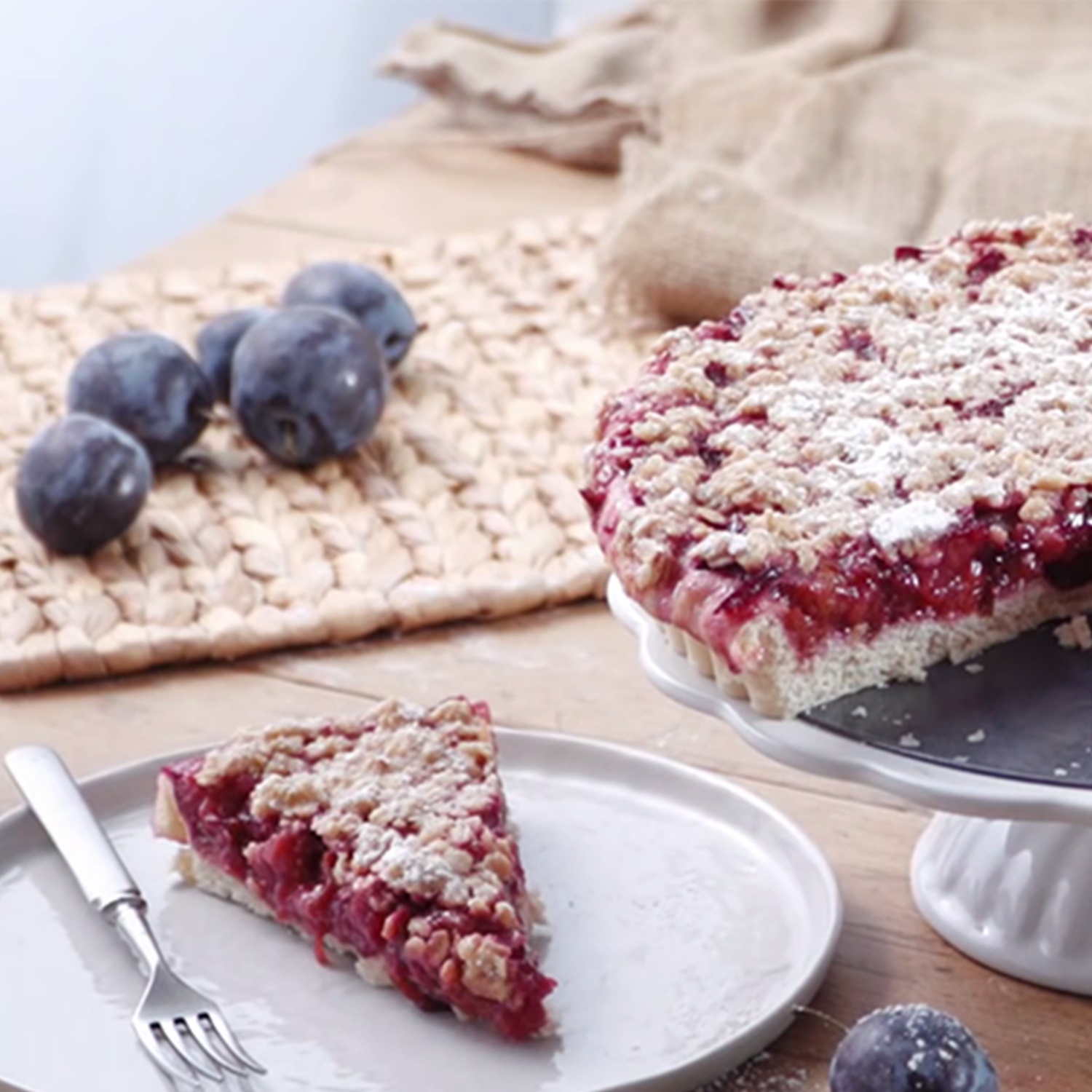 Zwetschgen-Kuchen mit Haferflockenstreuseln
