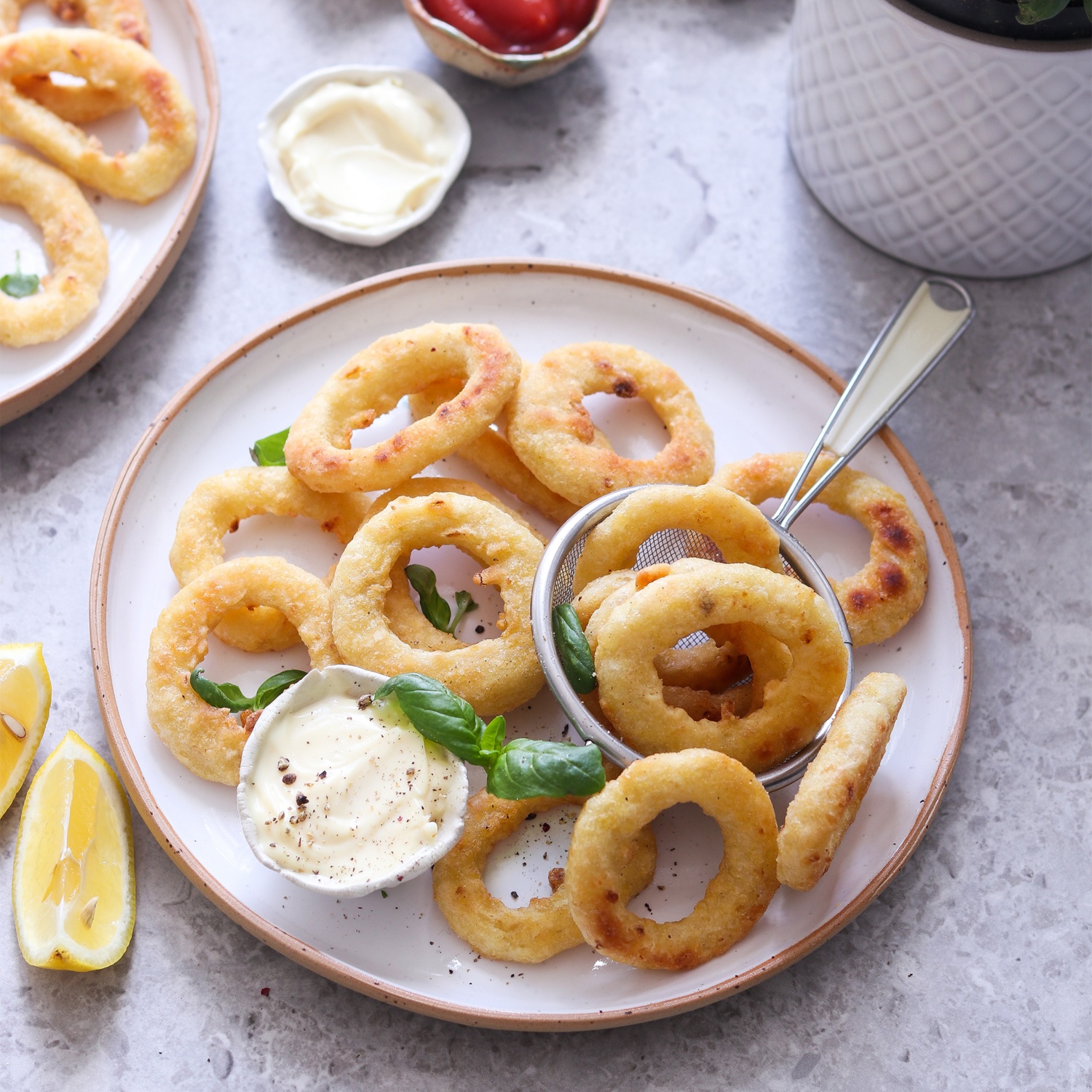 Zwiebelringe mit Zitronen-Mayonnaise