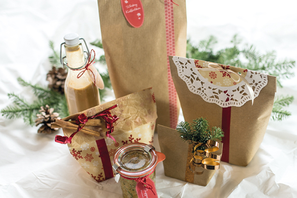 Und wenn man etwas so Besonderes verschenkt, kann man es nicht in ein x-beliebiges Geschenkpapier verpacken und übergeben. Das jedenfalls ist meine Meinung. Einfach in ein Papier einrollen, das würde schon rein optisch den Wert des Geschenks mindern. Eine persönliche und eigenständige Verpackung wertet jedes Mitbringsel auf, und sei es noch so klein. Daher findest du unten verschiedene Vorschläge für selbstgemachte Verpackungen – wie du siehst, bleibt da noch viel Raum für deine eigenen kreativen Ideen. So wird ein Packerl von dir klar als solches erkennbar. Nicht 08/15. Eben. Genauso wenig wie dein Geschenk. In die Verpackung kann man nämlich noch so richtig viel Liebe reinstecken. Und du wirst dich wundern, wie das gewürdigt wird!