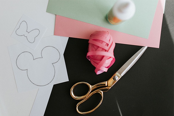 In die Mausohren müsst ihr jetzt Löcher für das Geschenkband machen. Ihr könnt sie mit der Schere hineinschneiden oder mit einem Locher machen.