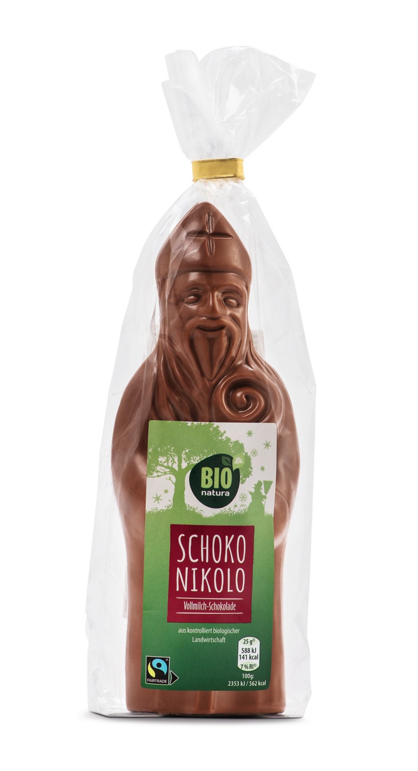 - BIO natura BIO-Nikolo, Fairtrade Cocoa, mit EU-Bio-Siegel, 150 g, um 3,99 Euro